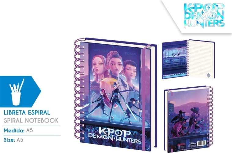 Ontdek het praktische en stijlvolle A5 spiraalnotitieboek met het unieke Demon Hunters-motief, geïnspireerd door de wereld van K-pop. Het notitieboek is een uitstekende keuze voor dagelijkse notities, planning of het bijhouden van een persoonlijk dagboek. Dankzij de kwalitatieve spiraal bladeren de pagina’s moeiteloos om en opent het schrift comfortabel plat.