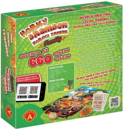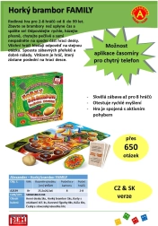 Inhoud van de doos: speelbord, 165 vraagkaarten, 8 gekleurde pionnen, tol, Nederlandse en Slowaakse handleiding.