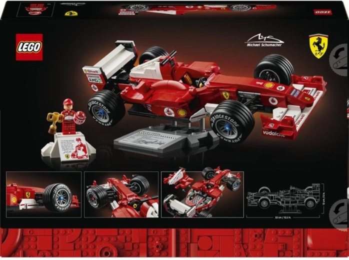 - Voor F1-fans: minifiguur van MICHAEL SCHUMACHER met helm, trofee en podium met graphics en citaat.