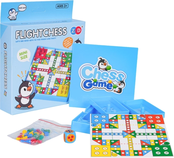 Het vrolijke bordspel Ludo in pinguïnstijl biedt klassiek plezier voor het hele gezin. Dankzij de kleine afmetingen neem je het gemakkelijk mee op reis, in de auto of op vakantie. Spelers gooien om de beurt met de dobbelsteen, verplaatsen hun pionnen over het bord en proberen als eerste allemaal de finish te bereiken.