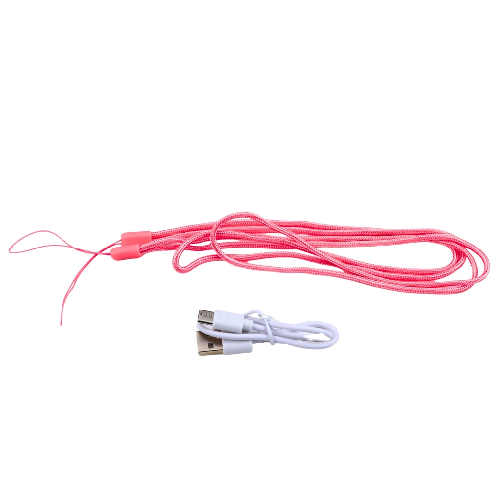 Het nekkoord houdt de walkietalkie binnen handbereik en de meegeleverde USB‑C‑kabel zorgt voor snel opladen wanneer dat nodig is.