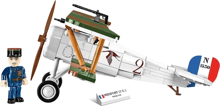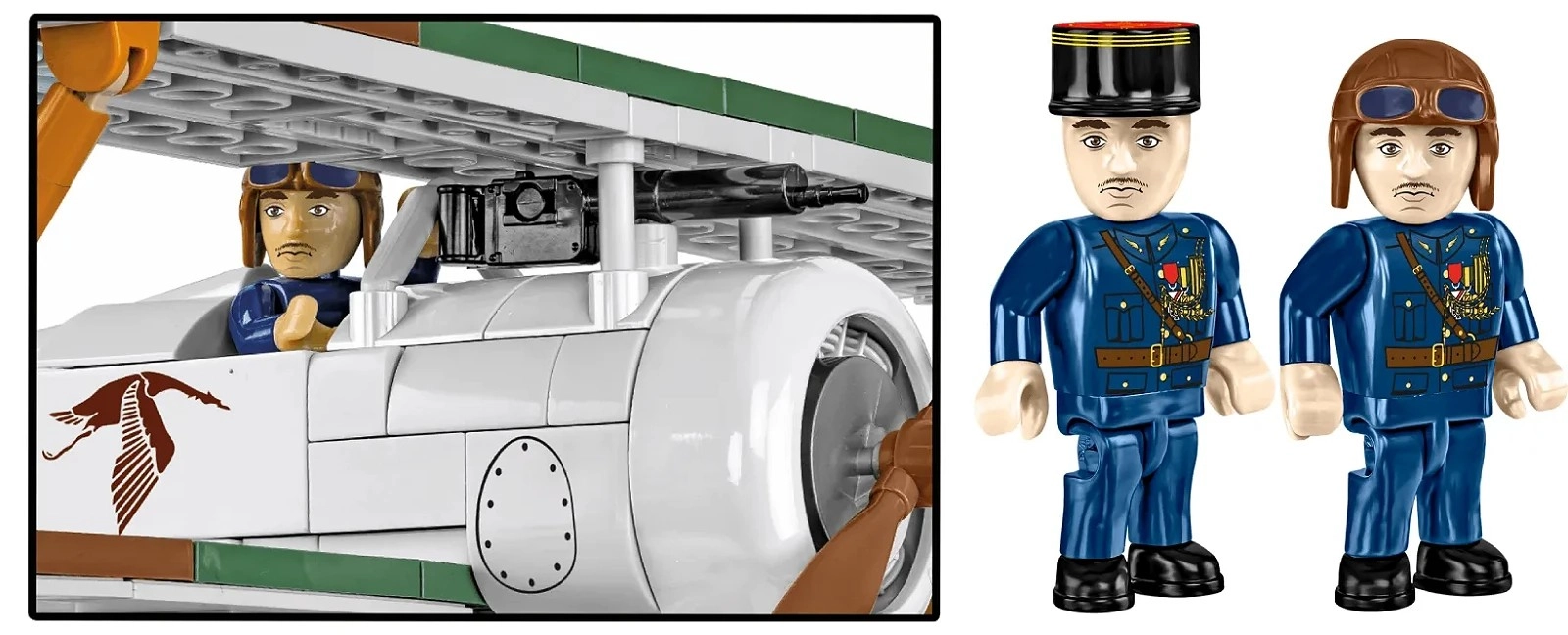 Bevat een pilotenfiguur geïnspireerd op Georges Guynemer, inclusief twee verwisselbare hoofddeksels – een sjako en een pilotenmuts met bril – voor meer speelscenario’s.