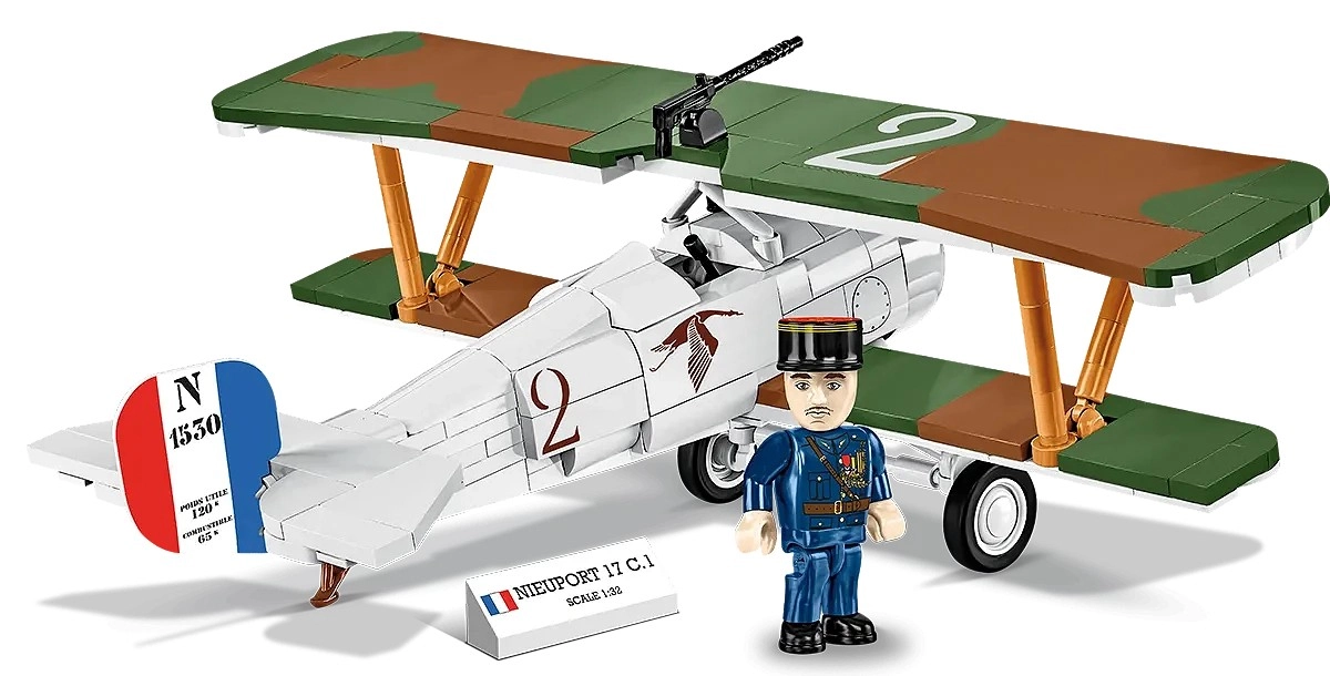 Bouw de legendarische Franse jacht-dubbeldekker Nieuport 17 C.1 uit de Eerste Wereldoorlog op schaal 1:32. De set met 277 onderdelen biedt authentieke afwerking, een functionerende propeller en landingsgestel, een standaard met naamplaatje en een pilotenminifiguur geïnspireerd op Georges Guynemer. Ideaal voor verzamelaars, liefhebbers van geschiedenis en jonge bouwers van 9+.