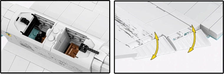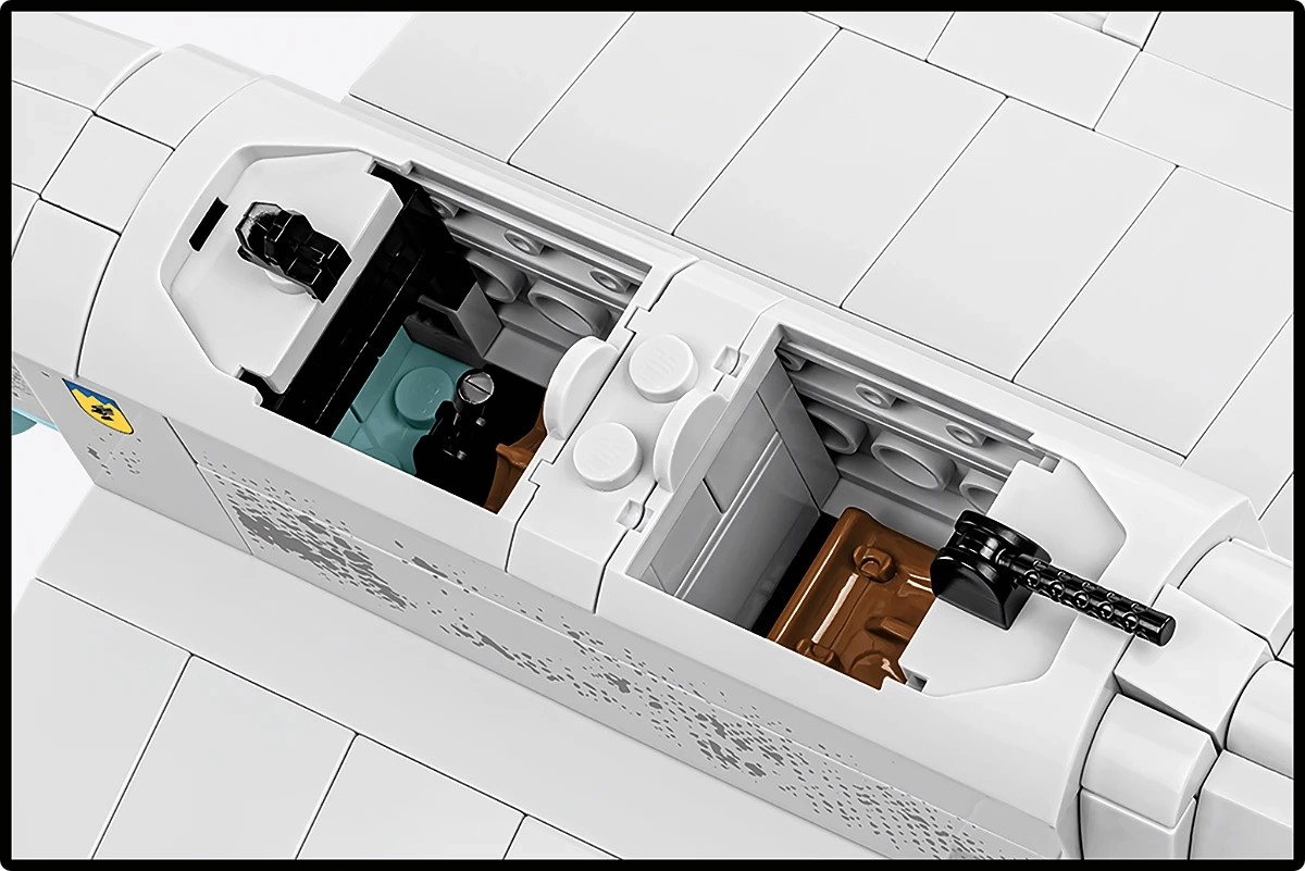 De set legt de nadruk op speelbaarheid én display: de cockpit kan open zodat je de piloten kunt plaatsen, de propeller draait, wielen met rubberen banden rollen soepel en bewegende vlakken geven het model extra dynamiek. Een speciale standaard met de naam van het vliegtuig onderstreept het verzamelkarakter en maakt het mogelijk het model “in vlucht” te tonen.