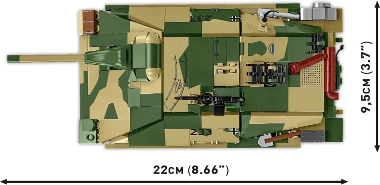 Het model Jagdpanzer 38(t) “Chwat”, ook bekend als “Hetzer”, beeldt trouw de buitgemaakte tankjager uit die een symbool van vindingrijkheid en moed werd. Dankzij de 1:28-schaal komen proporties, oppervlakte-details en de nauwkeurige silhouette goed tot hun recht. Een afneembaar pantserdeel onthult een realistisch uitgewerkt interieur – zowel de bemanningsruimte als het motorcompartiment – en de bewegende rubberen rupsbanden zorgen voor soepel spelplezier.