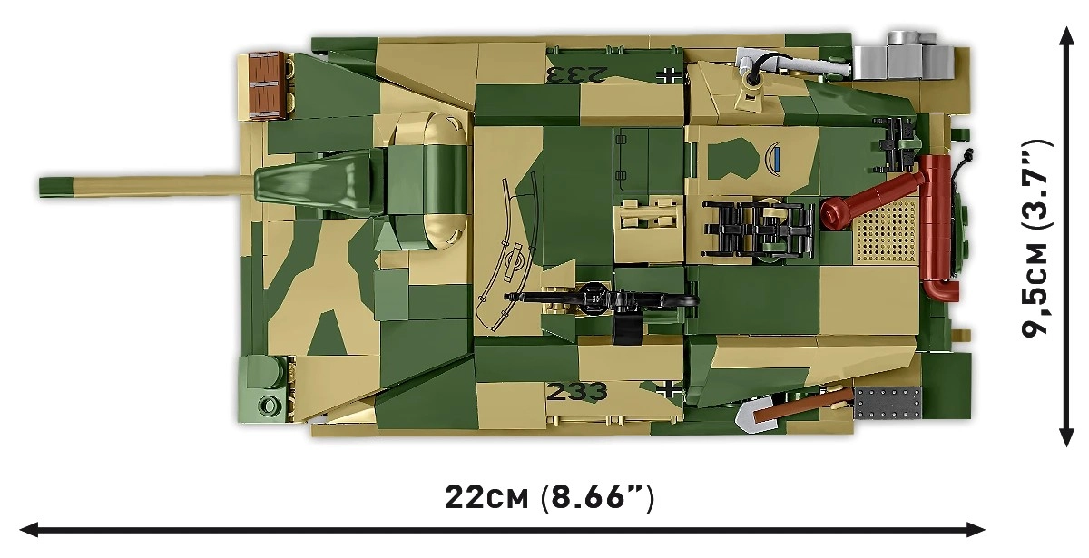 Rubberen rupsbanden rollen soepel; het lange kanon, het bovengeplaatste machinegeweer en het gedetailleerde oppervlak ontbreken niet. Het model rijdt uitstekend en komt bovendien mooi uit in de vitrinekast.