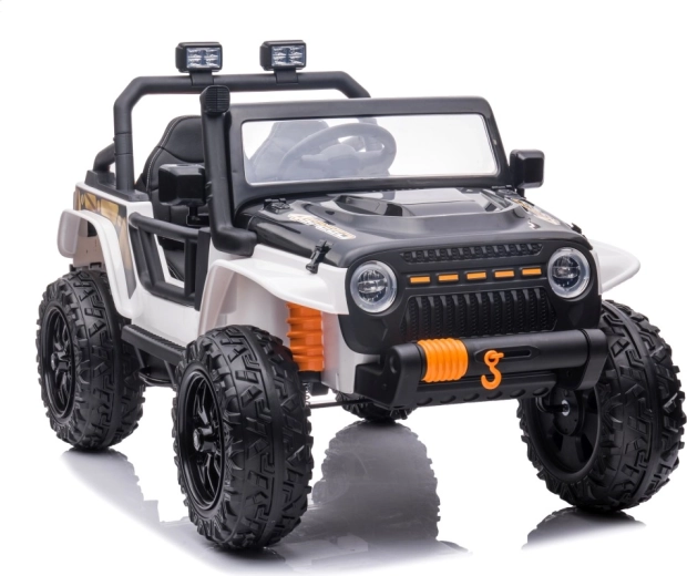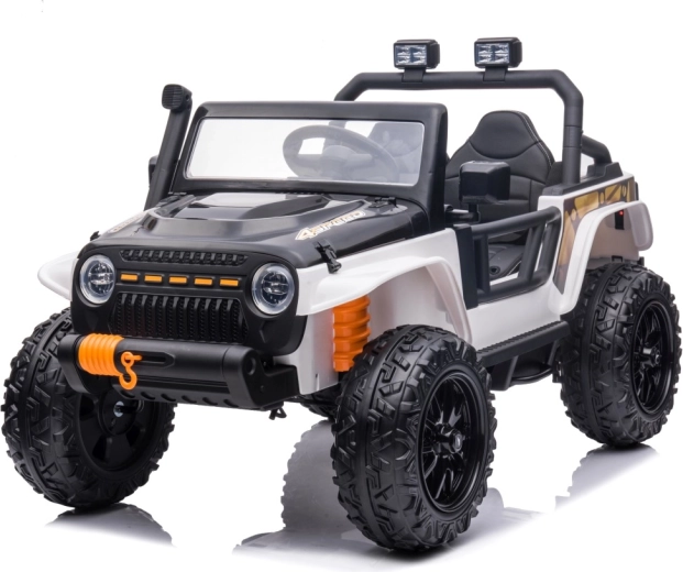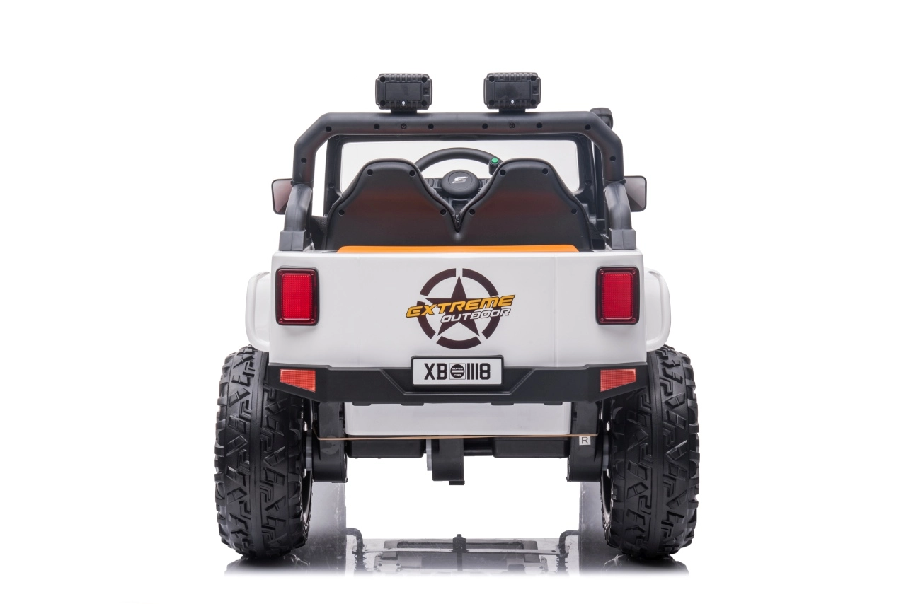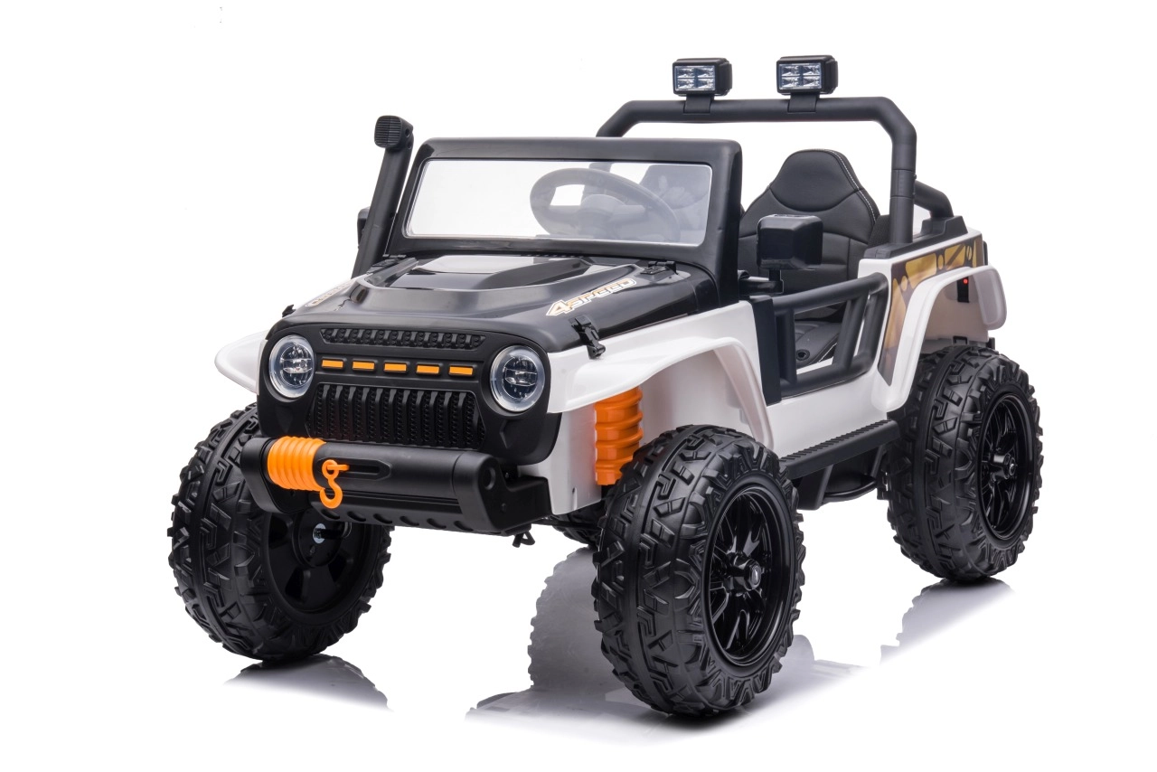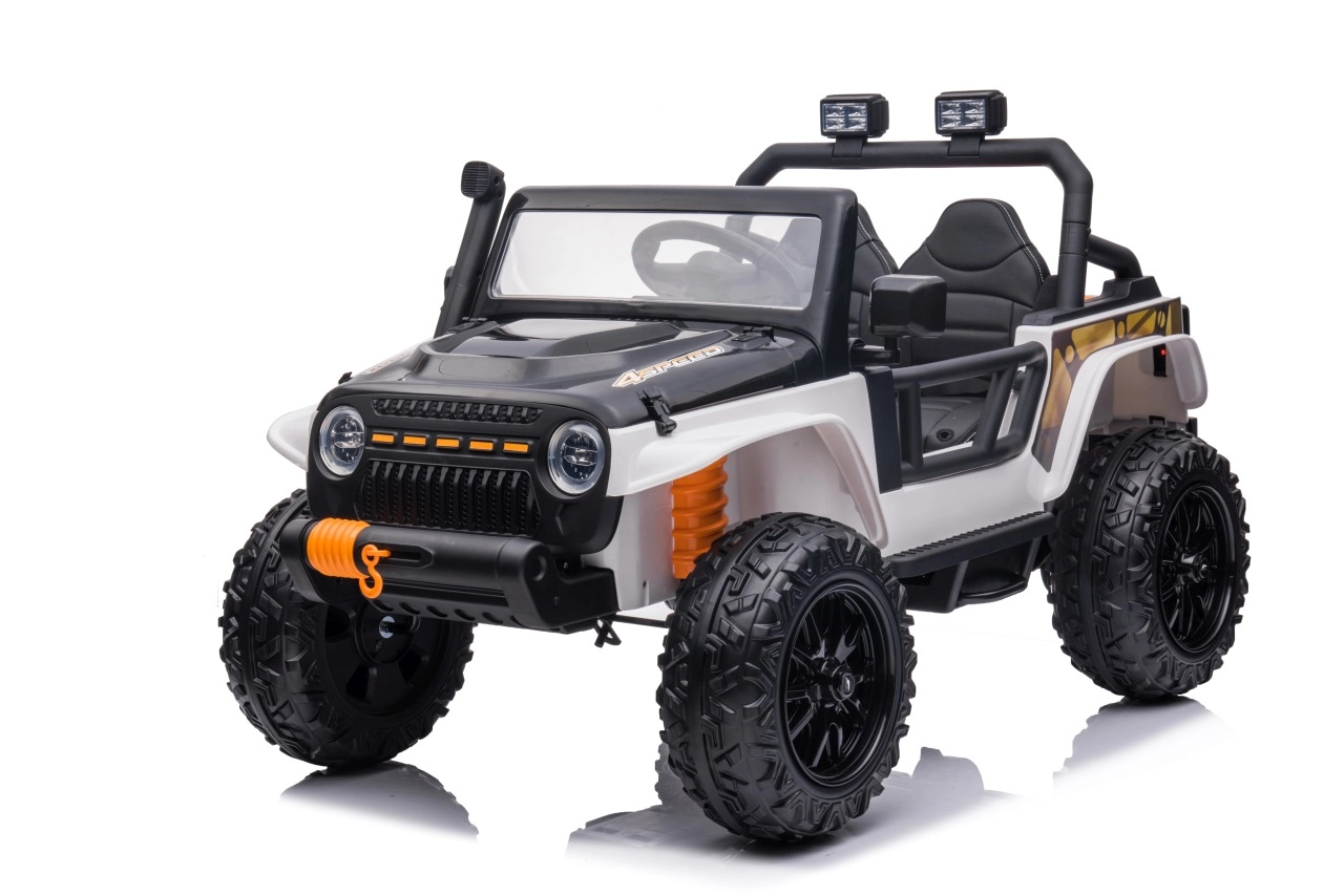 Ontdek de robuuste kinderauto in jeep-stijl, gemaakt voor avonturen in de tuin en op verharde paden. De krachtige configuratie met 4x200 W motoren en een 24 V 7 Ah accu zorgt voor een soepele en betrouwbare rit. Zachte EVA-wielen 30 × 12 cm en achtervering dempen oneffenheden aanzienlijk, terwijl de soepele start jonge bestuurders beschermt tegen schokkerige wegritten.