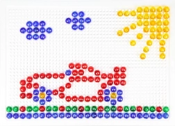 De LENA kristallen knopjesmozaïek is een ideale keuze voor spelenderwijs leren. De kleurrijke, translucente pinnetjes plaats je eenvoudig in de duurzame geperforeerde plaat en laten kinderen motieven leggen zoals visjes, vliegtuigen of bloemen. Het spel ondersteunt op natuurlijke wijze de concentratie, oog-handcoördinatie en het herkennen van kleuren.