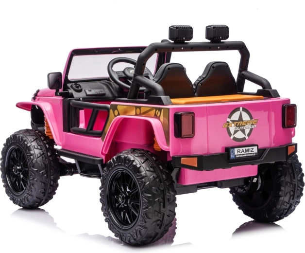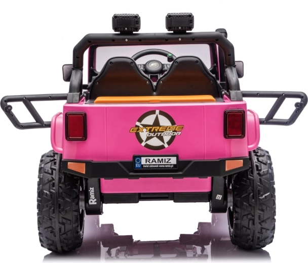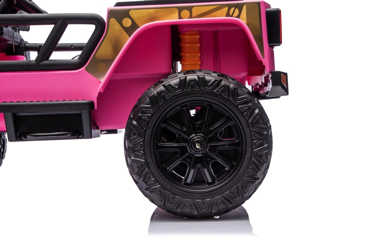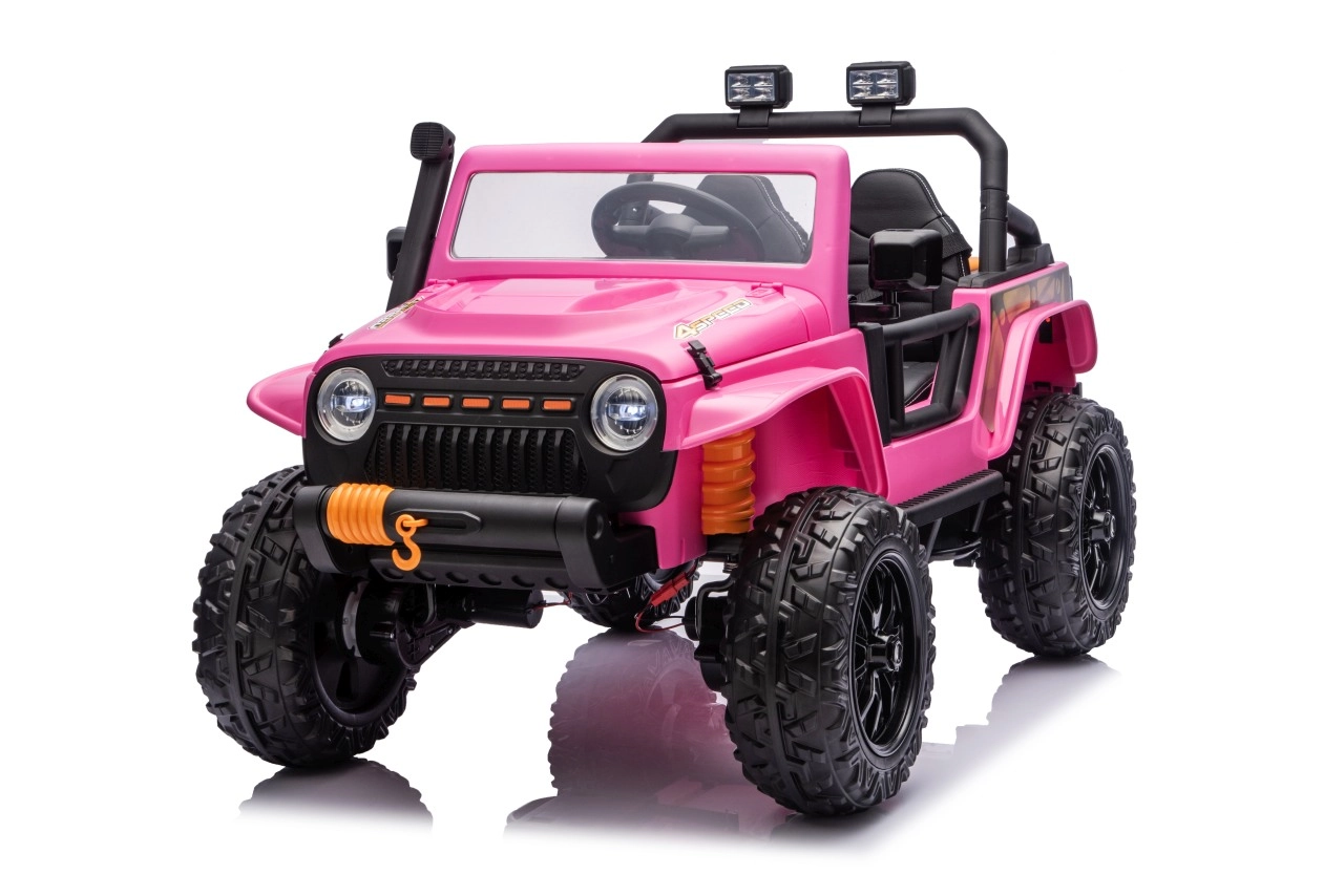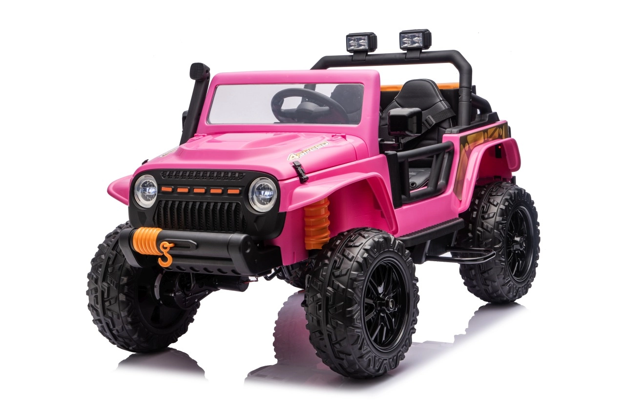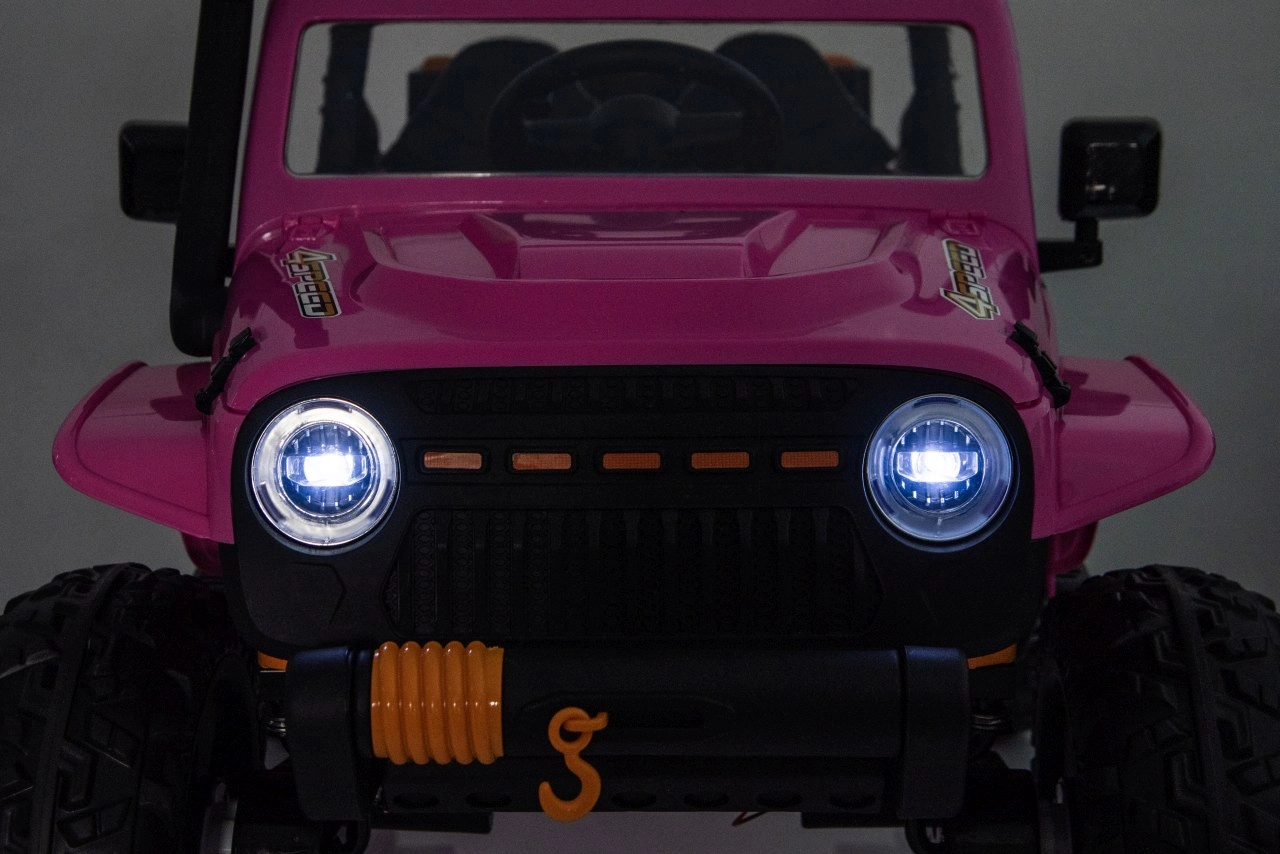 De Jeep Monster is de ideale keuze voor kleine avonturiers. De hoge grondspeling van 21 cm, achterwielvering en enorme EVA-terreinbanden zorgen voor comfortabel rijden, zelfs op ongelijk oppervlak. Vier 200 W motoren garanderen een soepele acceleratie en voldoende kracht bergop, terwijl de soft start kinderen beschermt tegen schokken.