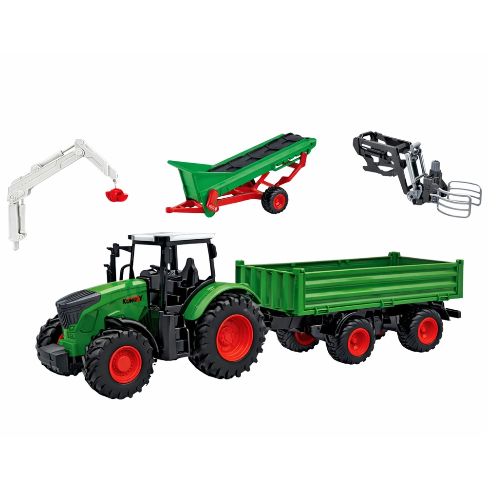 De kiepbare aanhanger en draaibare transportband maken het laden en vervoeren van hooi, hout en voer gemakkelijk. Kinderen beleven realistisch boerderijkwerk.