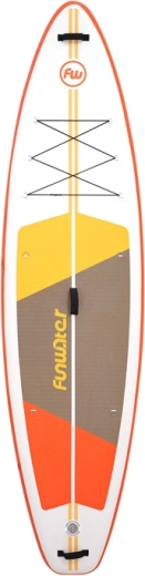 De veelzijdige opblaasbare paddleboard van FunWater is ideaal voor meren, rivieren en zee. Biedt hoge stabiliteit, een anti-slip EVA oppervlak, afneembare vinnen voor betere koersvastheid en een complete set accessoires inclusief peddel, pomp en rugzak voor gemakkelijk vervoer.