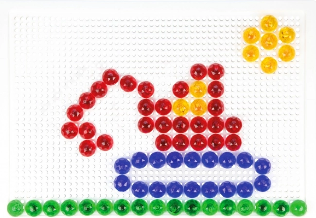 Met deze kleurrijke kristallen mozaïek kunnen kinderen unieke motieven maken – van dieren tot huisjes en voertuigen. De transparante pinnetjes schitteren prachtig en moedigen aan om verder te leggen, terwijl de stabiele gerasterde onderplaat alles veilig op zijn plek houdt.