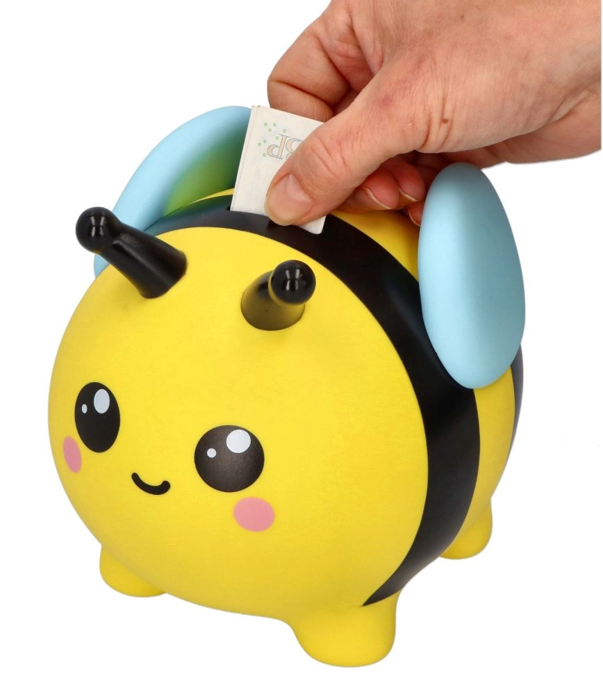 Deze schattige bij verandert sparen in een plezierige bezigheid. Dankzij de afmetingen 21 × 14,7 × 15,8 cm past er veel in: zowel munten als bankbiljetten. Het gladde, kleurrijke oppervlak en de lieve uitdrukking maken het een geweldige toevoeging aan de kinderkamer. Het duurzame PVC zorgt voor een lange levensduur en eenvoudig onderhoud.