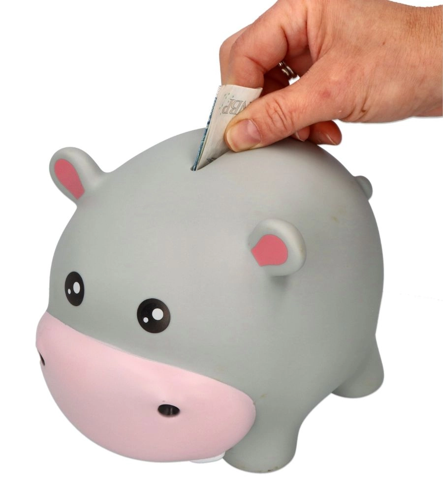 De speelse nijlpaardvorm stimuleert een gewoonte van regelmatig sparen en past prachtig in de kinderkamer of op kantoor.