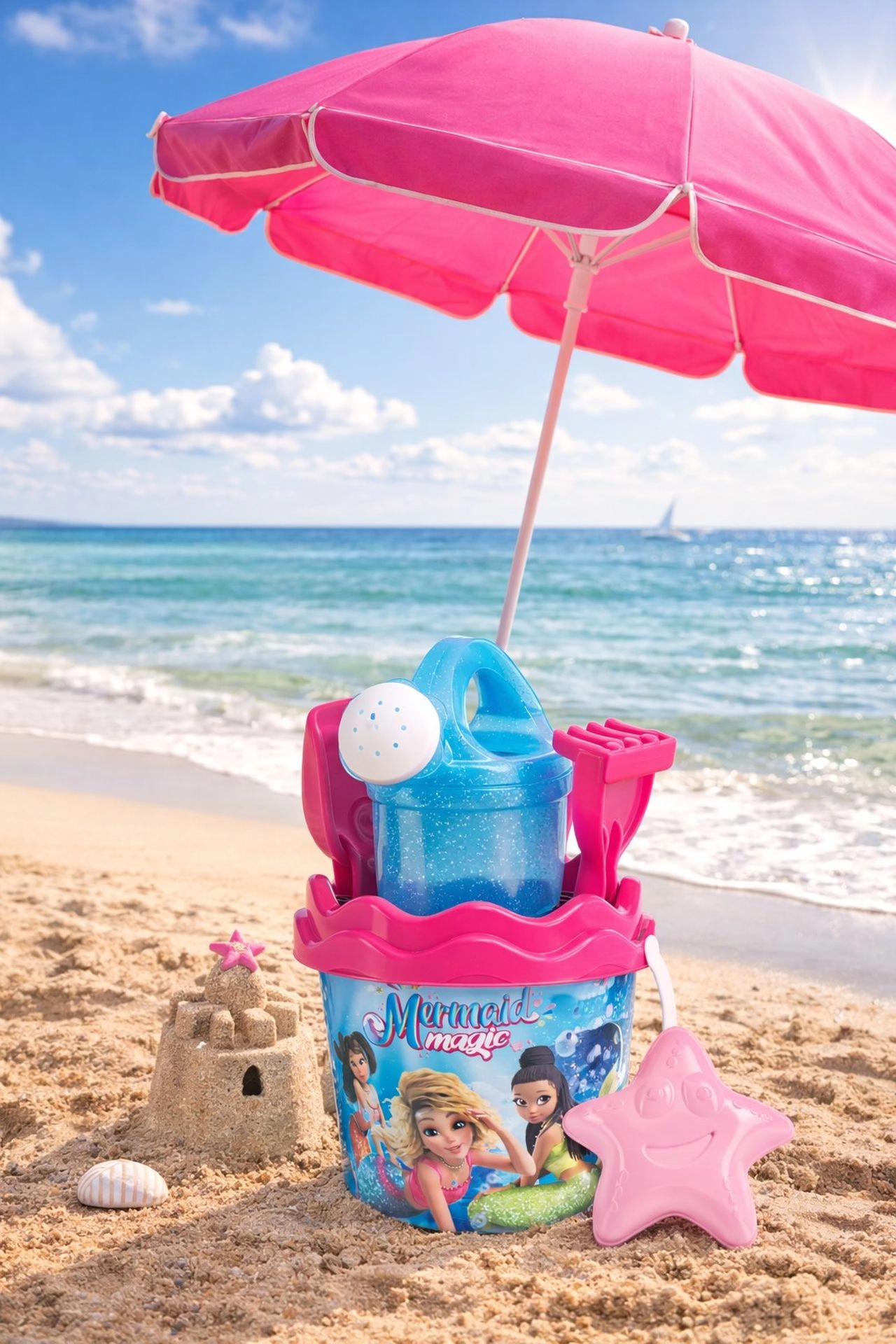 De zandset Zeemeerminnen van Androni biedt kinderen eindeloze creatieve mogelijkheden in de zandbak en bij het water. Dankzij het gebruik van hoogwaardige gerecyclede kunststoffen is de set duurzaam, licht en milieuvriendelijk. De glinsterende gieter met een inhoud van 0,5 l zal kleine waterratjes verrukken en is ideaal voor creatief spel bij het bouwen van kastelen en vormen.