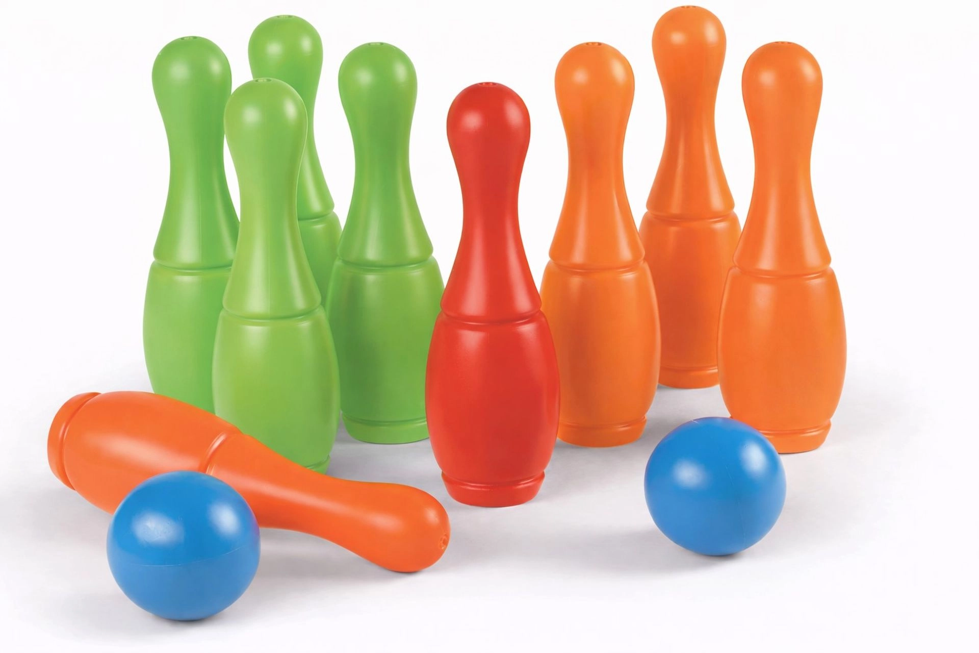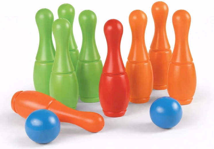 Leuke ANDRONI-bowlingset voor kleine en grote spelers, bevat 9 kleurrijke kegels en 2 vulbare ballen. Voor extra stabiliteit kun je ze vullen met water of zand. Kwalitatieve afwerking uit Italië en een veilige grip zorgen voor volop plezier, zowel binnen als buiten.