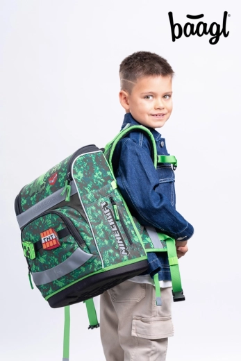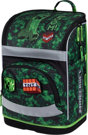 De Baagl Zippy Plus schooltas met het MINECRAFT Boom-motief is een ideale keuze voor kinderen vanaf groep 3. Dankzij de stevige, verstevigde romp behoudt hij uitstekend zijn vorm en blijft hij zelfstandig staan, wat het opbergen van schriften en boeken makkelijker maakt. Het verstelbare rugsysteem maakt instelling in drie verschillende maten mogelijk, zodat de tas met het kind meegroeit. Volledig verstelbare schouderbanden en een afneembare heupgordel zorgen de hele dag voor comfortabel en ergonomisch verantwoord dragen.