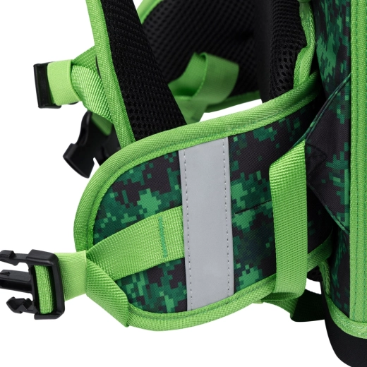 Lichte en ergonomische schooltas voor eersteklassers en jonge scholieren met een verstelbaar rugsysteem, volledig verstelbare schouderbanden en een afneembare heupgordel voor maximaal comfort. Heeft een stevige romp, stabiele bodem, reflecterende elementen en hoogwaardige YKK-ritsen. Een praktische interne organizer, thermovak voor snacks en verwisselbare badges maken zowel kinderen als ouders blij. Gemaakt van gerecycled, waterbestendig materiaal, volume 21 l, draagvermogen 7 kg, gewicht 1.150 g.