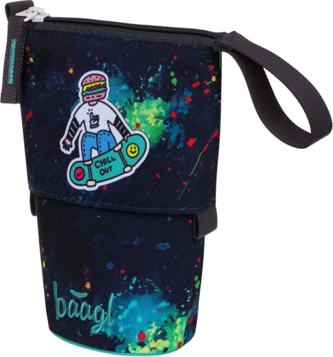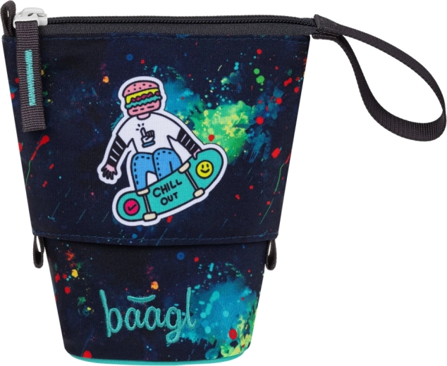Praktische staande etui van BAAGL met het motief Chill Out, gemaakt van een waterbestendig en stevig materiaal, houdt schrijfwaren overzichtelijk bij elkaar. Dankzij het slimme ontwerp tover je het met één beweging om in een pennenhouder, met bovendien een geheime zak voor kleine spullen. Een duurzame keuze met GRS-certificering en een moderne stijl voor scholieren.