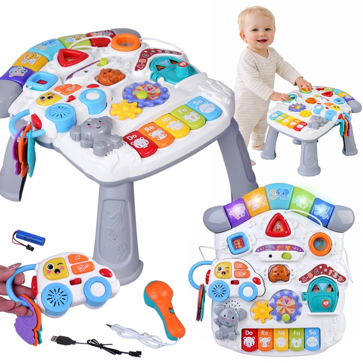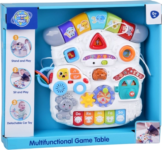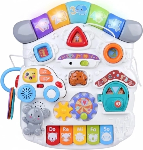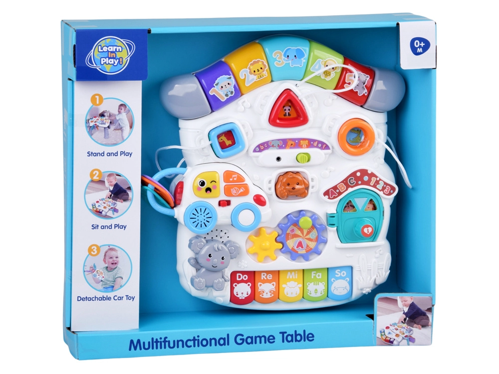 Het muzikale paneel met Do–Re–Mi-klavier, microfoon en leuke effecten ondersteunt zintuiglijke ontwikkeling en ritme. Het vormenpaneel helpt kleuren, vormen en dieren te leren herkennen, terwijl het afneembare autootje met sleutels ook los van de tafel vermaakt. Dankzij de rijke interactie trainen kinderen greep, concentratie en logisch denken.