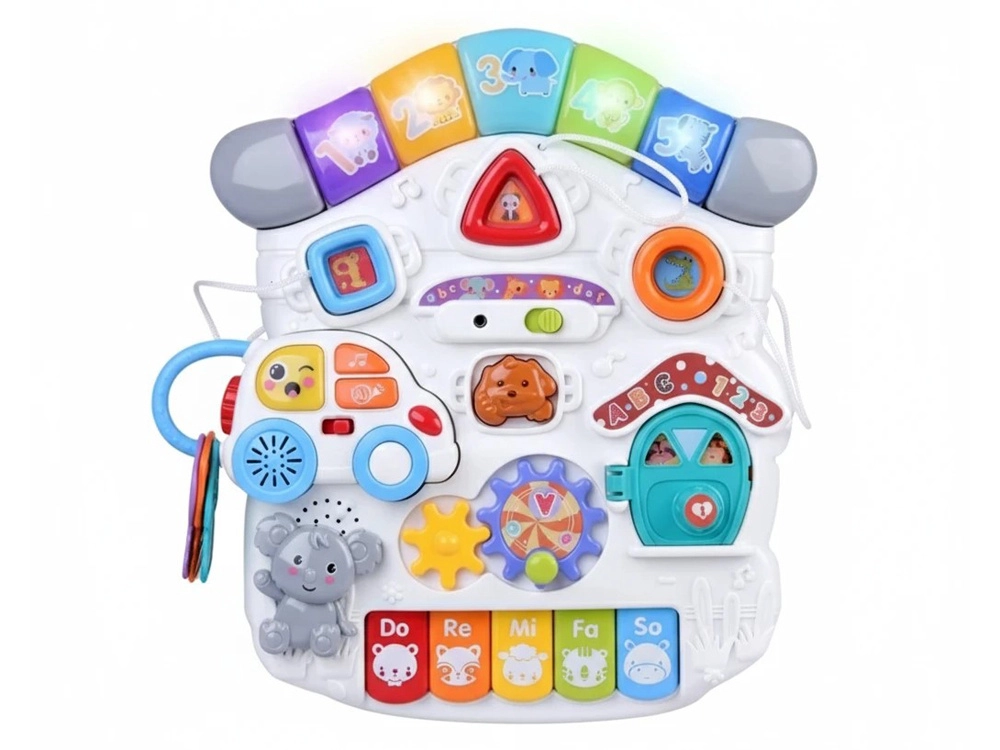 - Multifunctioneel speelplezier: piano, vormen, dieren, tandwielen, schuivers, microfoon, autootje.