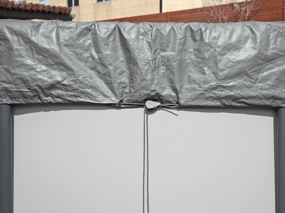Praktische afwateringsgaten voeren regenwater af, zodat er geen zware plassen op het zeil ontstaan. Het windbestendige spansysteem houdt het zeil stevig op zijn plaats en zorgt voor een betrouwbare aansluiting op de zwembadrand.