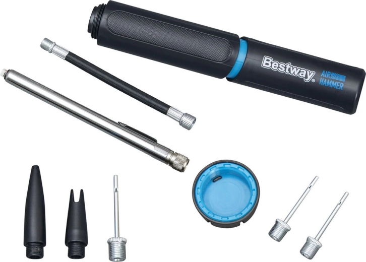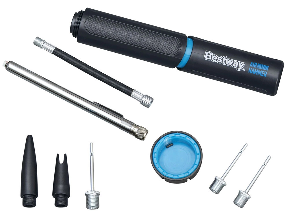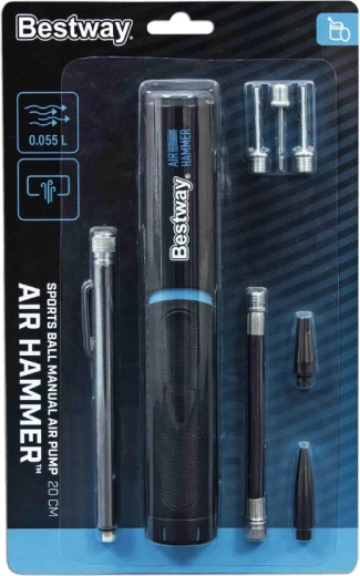 De BESTWAY Air Hammer handpomp combineert universeel gebruik met eenvoudige bediening. Ideaal voor thuis, trainingen en op vakantie. Met een compacte lengte van 20 cm past hij in een rugzak of sporttas en dankzij de praktische opbergruimte voor naalden en adapters heb je alles altijd bij de hand.