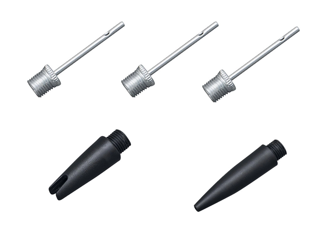 Drie ballennaalden en twee adapters voor verschillende ventielen dekken de meeste sport- en recreatiebehoeften.