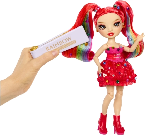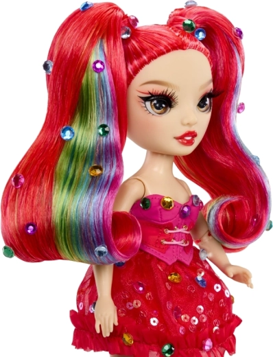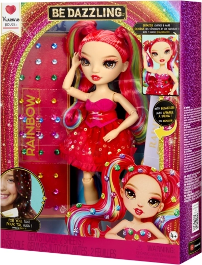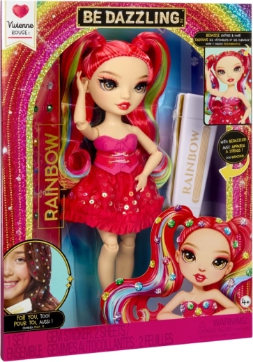 De Rainbow High-pop Vivienne Rouge brengt een krachtige rode energie naar je collectie, met mode geïnspireerd door het regenboogspectrum. Haar lange doorkambare haren met regenbooglokjes, glinsterende jurk en bijpassende schoenen maken indrukwekkende combinaties mogelijk om mee te spelen of om neer te zetten. Dankzij de gewrichten in armen, benen en hoofd poseer je haar eenvoudig in verschillende houdingen.