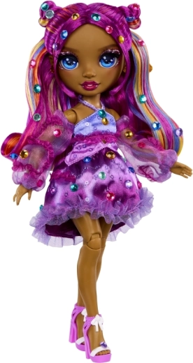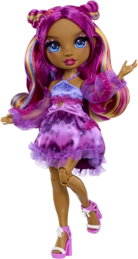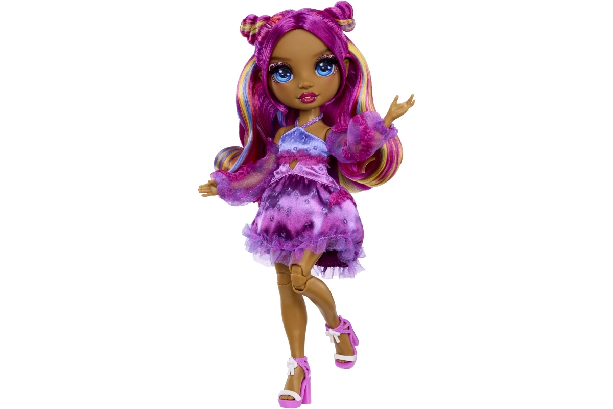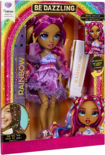 De pop Noemie Violette brengt naar de wereld van RAINBOW HIGH een uitgesproken paarse styling, gedetailleerde make-up en een outfit met ruches waar alle liefhebbers van modespeelgoed dol op zullen zijn. Dankzij de articulatie in knieën, ellebogen en polsen is ze ideaal om te poseren en voor creatieve fotosessies.