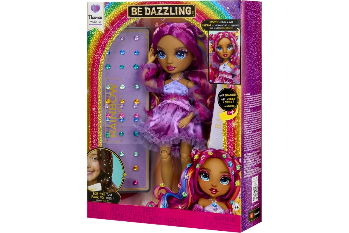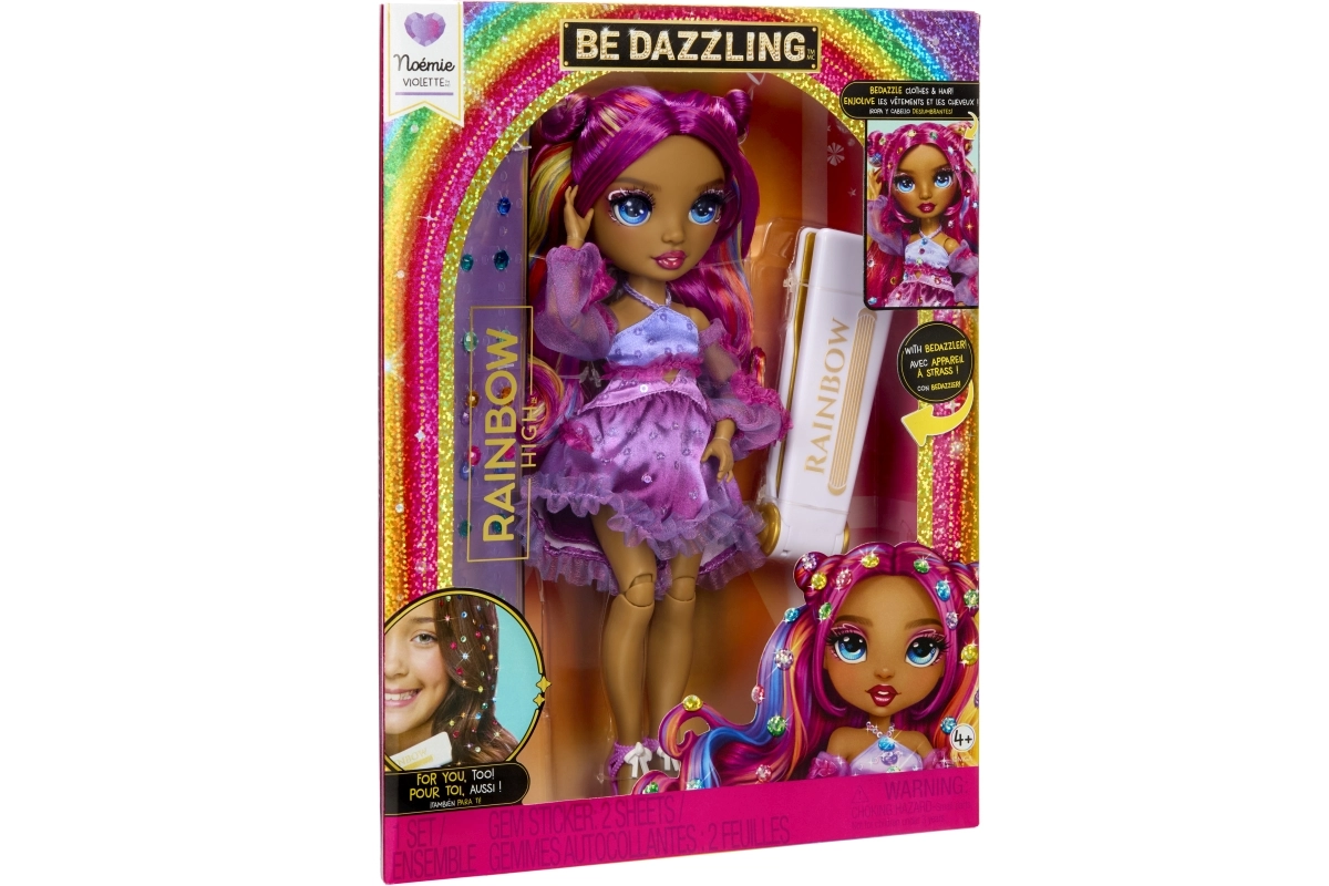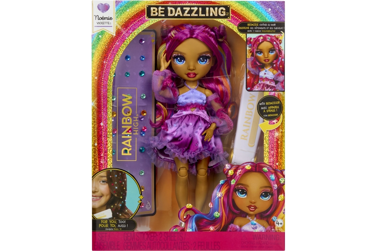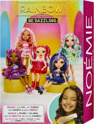Ontdek de magie van mode en creativiteit met de Rainbow High Be Dazzling – Noemie Violette pop. Deze stijlvolle pop met lang, kamvriendelijk haar en bewegende gewrichten maakt eindeloze poses en kapsels mogelijk. Met de krimptang bevestig je eenvoudig glinsterende regenboogsteentjes in het haar en op de outfit, zodat elke look een oogverblindend origineel wordt. Een geweldig cadeau voor kleine stylisten en fans van RAINBOW HIGH vanaf 4 jaar.
