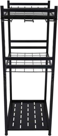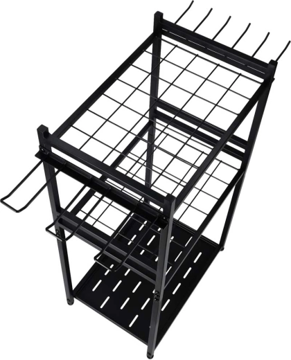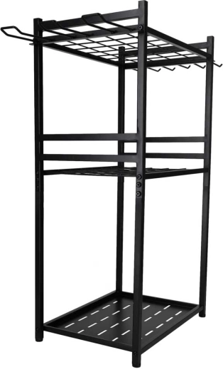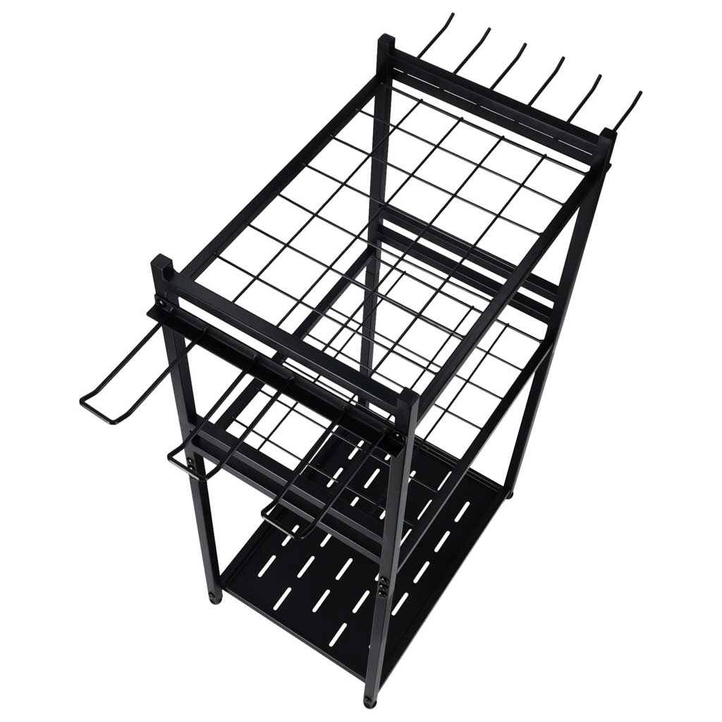 De praktische LUARO-standaard helpt rommel te beteugelen en alles binnen handbereik te houden – van lange harken en schoppen tot kleine hulpmiddelen. De open constructie zorgt voor goede ventilatie en direct overzicht, terwijl het robuuste stalen frame alles stevig op zijn plaats houdt.