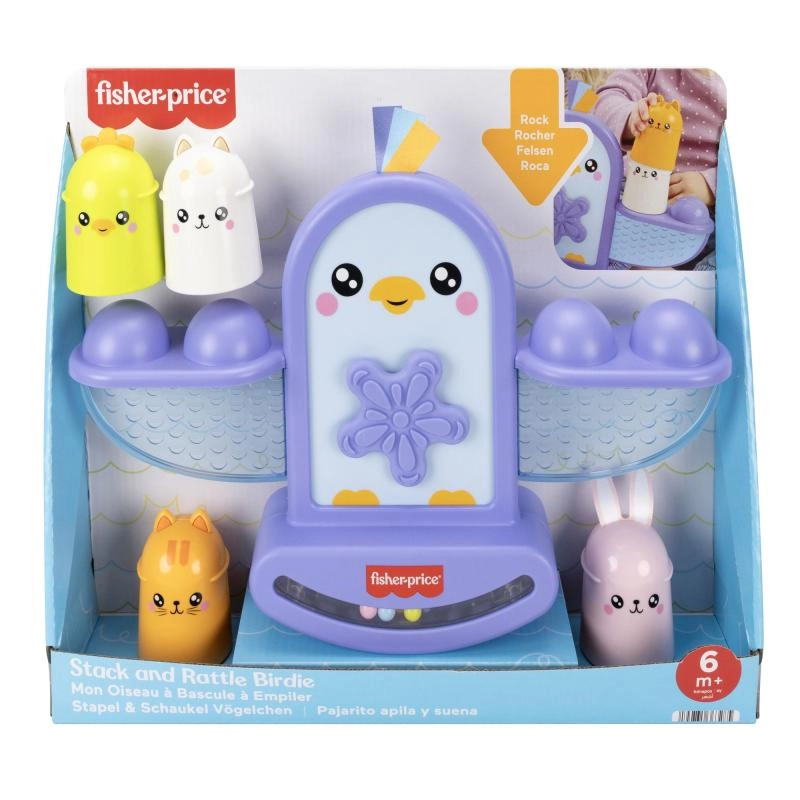 Ontdek plezier en leren met de Fisher-Price schommelende vogel, die zintuiglijke stimulatie, balanceren en stapelen combineert in één schattige activiteit. Kinderen stapelen en balanceren 4 kleurrijke dierendelen op de brede vleugels van de vogel, terwijl de schommelbasis met rammelkralen hun nieuwsgierigheid, motoriek en concentratie stimuleert.