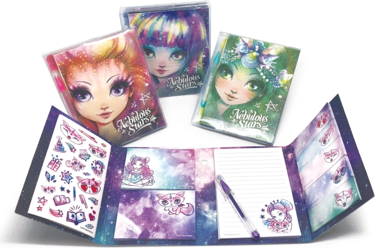 Ontdek de magische wereld van NEBULOUS STARS met dit mini dagboekje met pen, gemaakt voor het opschrijven van belevenissen, dromen en creativiteit onderweg. Elegante galactische illustraties en de bijpassende pen maken van elke notitie een klein ritueel, of je nu op school, thuis of op reis bent.