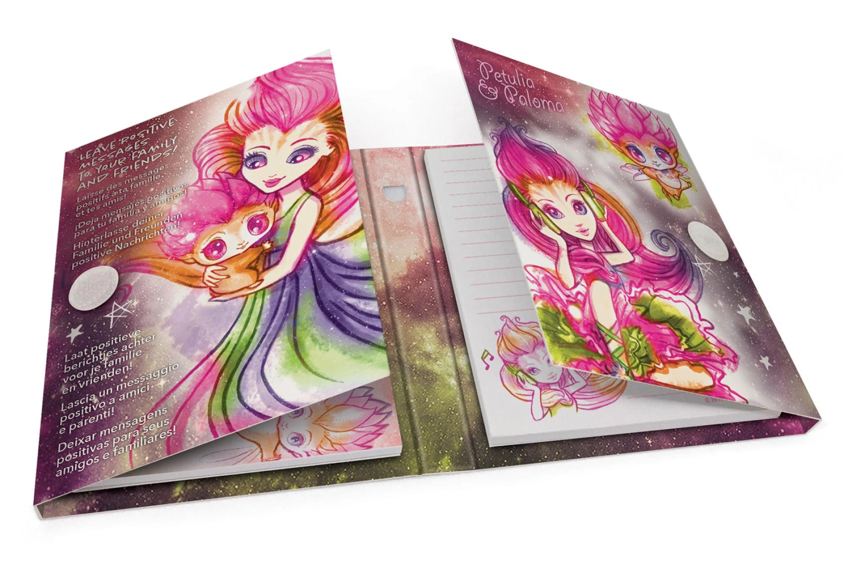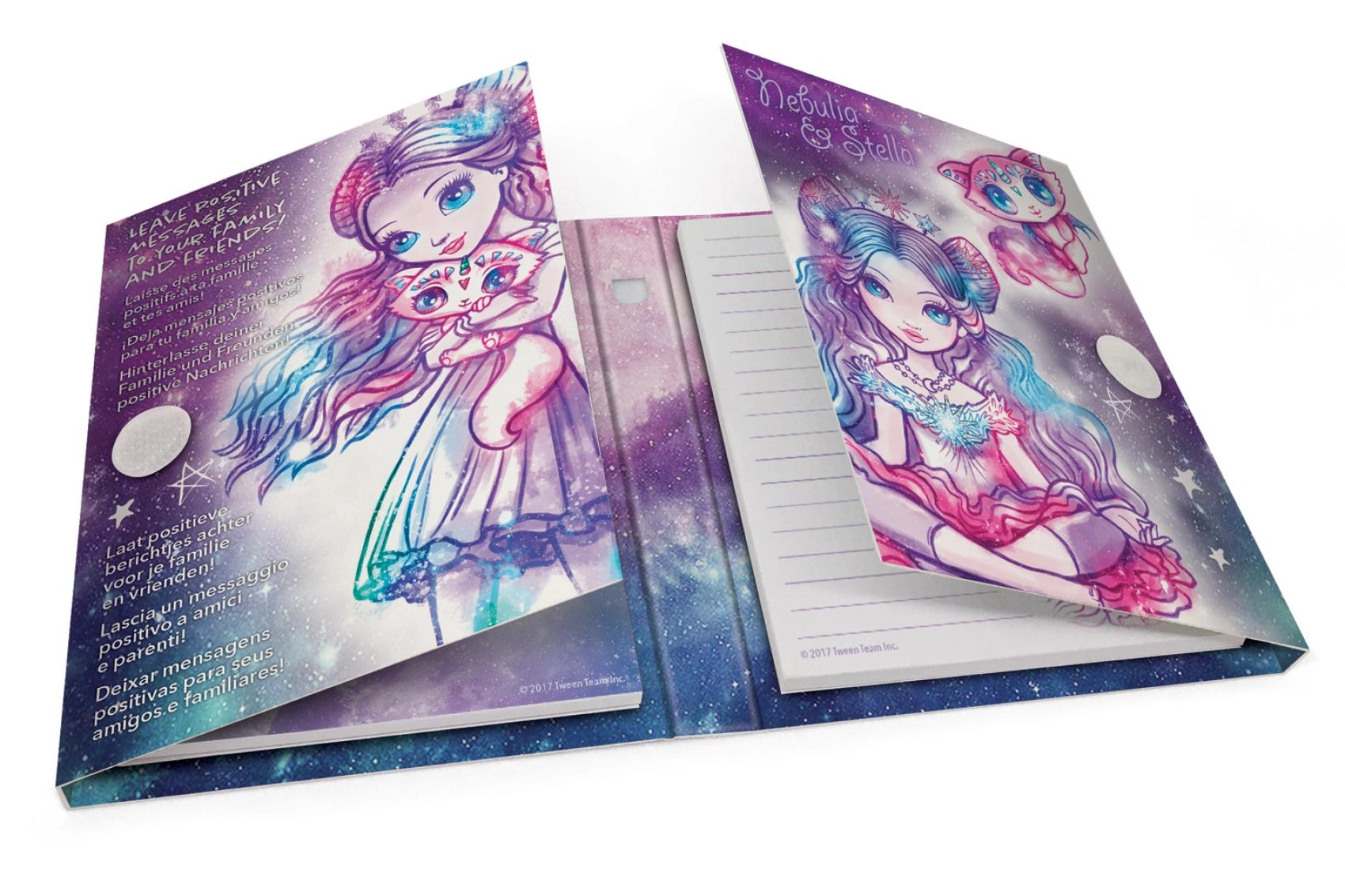 Harde kaft met kleurrijke illustraties en sterrenmotieven die fans van magische galaxieën zullen betoveren en elke notitie doen stralen.