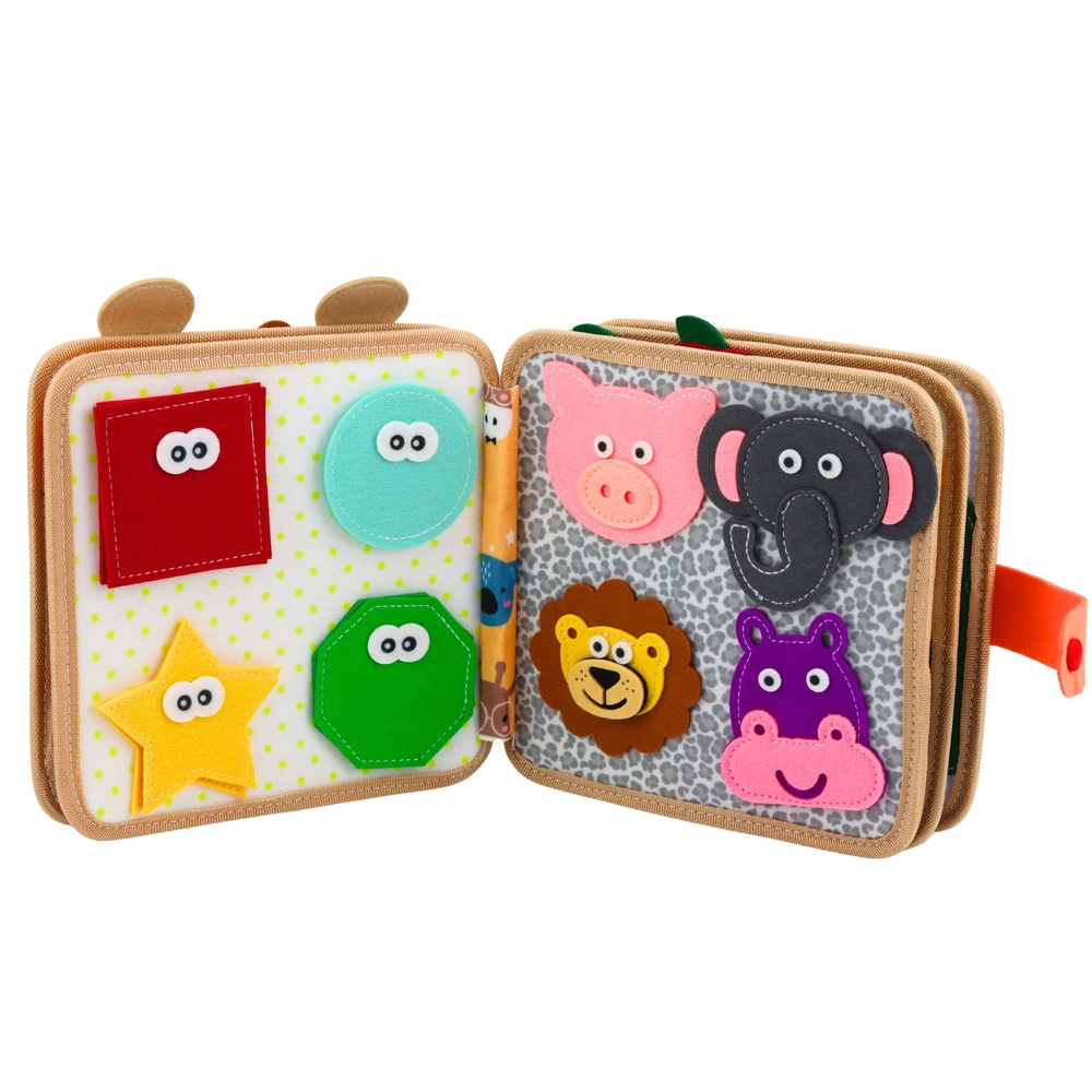 Zacht zintuiglijk viltboekje met een giraffe op de omslag biedt kinderen diverse interactieve elementen die fijne motoriek, oog-handcoördinatie en het leren van kleuren en vormen stimuleren. Dankzij verschillende verplaatsbare en vast te maken onderdelen en kleurrijke scènes spelen kinderen én ontwikkelen ze tegelijk slim hun vaardigheden – thuis, op de kleuterschool en onderweg.