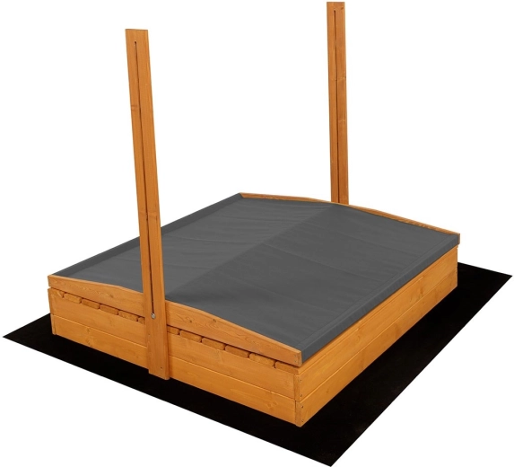 Het duurzame stoffen dak met verstelbare hoogte en helling biedt schaduw tijdens het spelen en bedekt na het afsluiten het volledige oppervlak van de zandbak.