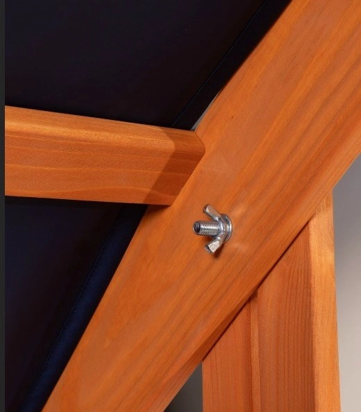 Het verstelbare dak van duurzaam, waterdicht textiel beschermt tegen zon en lichte regen en maakt het na het spelen eenvoudig om de zandbak af te dekken. Dankzij voorgeboorde gaten en een duidelijke handleiding is de montage snel en zonder overbodig gereedschap.