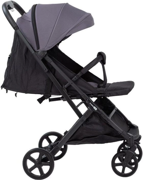 De sportieve kinderwagen FreeON Tao Grey combineert modern design, veiligheid en eenvoudig gebruik. Dankzij de geveerde wielen en de achterrem laat hij zich comfortabel sturen op stadsstoepen en licht terrein. Voor het kind zorgen de verstelbare rugleuning met mesh voor betere luchtcirculatie, de verstelbare beensteun en de 5-punts gordel voor comfort. De verstelbare kap met kijkvenster beschermt tegen de zon en laat je jouw kleine passagier steeds in het oog houden.