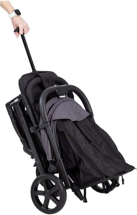 Afneembare wielen en veiligheidsbeugel maken opslag en reiniging eenvoudiger. Compact opgevouwen neemt hij weinig ruimte in huis en in de kofferbak in.