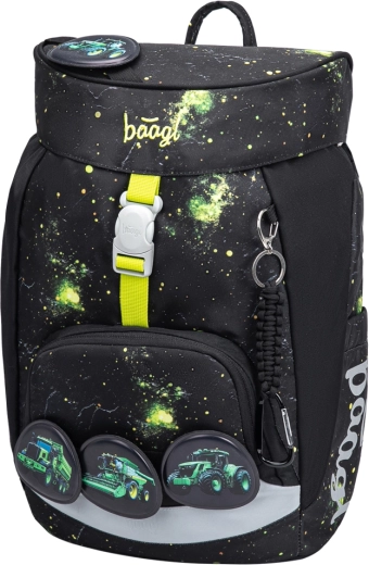 De praktische enkelvoudige indeling met binnenvak en elastiek voor mappen maakt het organiseren van schoolspullen eenvoudig. De rugzak is gemaakt van gerecyclede, waterafstotende materialen en voorzien van opvallende reflecterende elementen voor betere zichtbaarheid en veiligheid. Het intuïtieve Magnetic Click-sluitingssysteem is zelfs voor beginnende leerlingen makkelijk te bedienen. Het design is eenvoudig te veranderen dankzij afneembare badges (patches) met tractormotief.