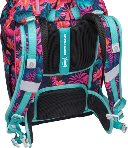 De BAAGL Airy Plus schoolrugzak met flamingo-motief combineert een moderne, speelse look met maximaal comfort en gezond dragen. Dankzij het gewicht van minder dan 1200 g belast hij de rug niet, terwijl het anatomisch gevormde rugpaneel met geïntegreerde aluminium versteviging bijdraagt aan een correcte lichaamshouding. Het meegroeiende Grow-systeem stel je eenvoudig in op drie maten, zodat de rugzak met het kind meegroeit.