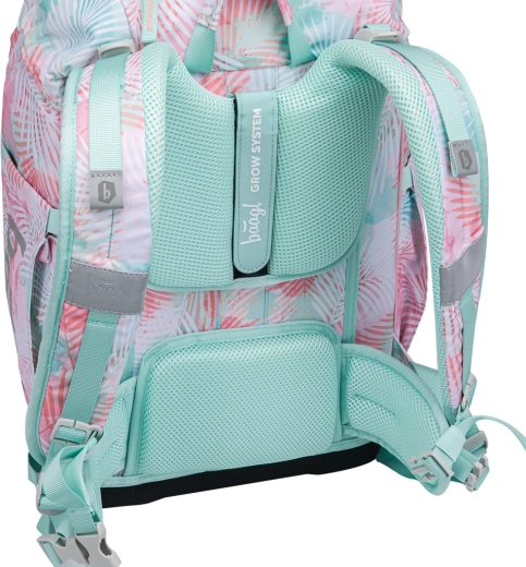 Het Grow-rugsysteem stel je in op drie maten voor optimale rugondersteuning. Ademend gevoerde padding, aluminium versteviging, borstriem en afneembare heupriem zorgen voor stabiliteit en een gezonde houding.