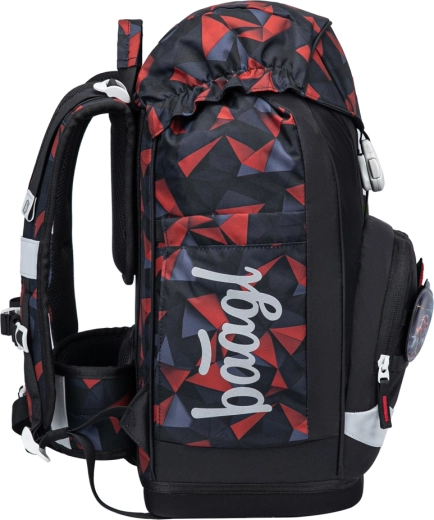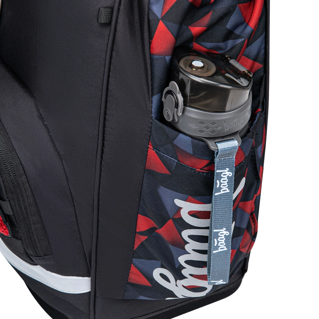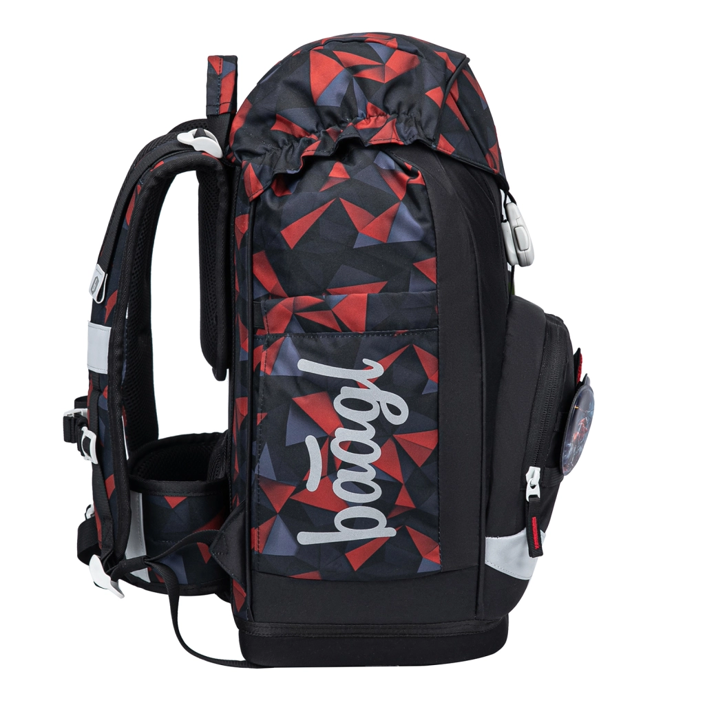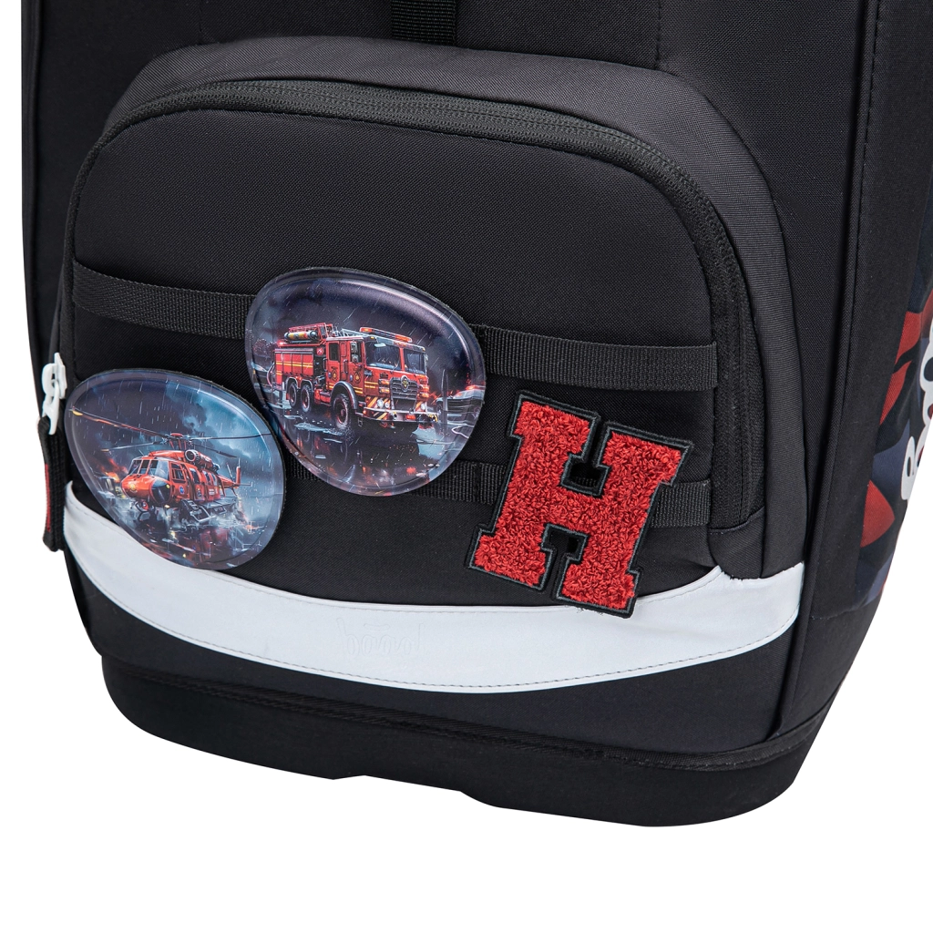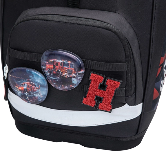 De interne indeling omvat een hoofdvak met organizer en beschermplaten voor schriften die de vorm van het achtervak volgen. Het voorste thermovak houdt de lunch langer vers en voorkomt geurtransfer. De magnetische klep klikt vanzelf dicht, zodat openen en sluiten zelfs voor beginnende leerlingen eenvoudig is. Het design wordt aangevuld met verwisselbare badges (Baaglies) voor persoonlijke styling.