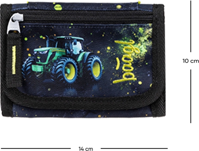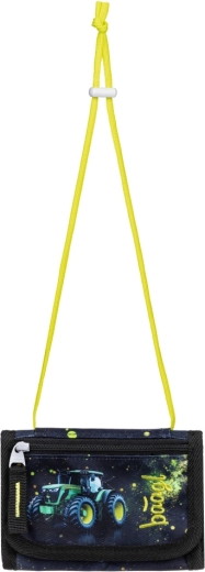 Praktische kinderportemonnee voor om de nek met Tractor-motief van BAAGL voor het veilig meenemen van kleine spullen. Biedt voldoende ruimte voor muntjes, een lunchchip of sleutels, heeft een verstelbaar koord met veiligheidsluiting, sluit met klittenband en is gemaakt van duurzaam gerecycled materiaal met GRS-certificering.