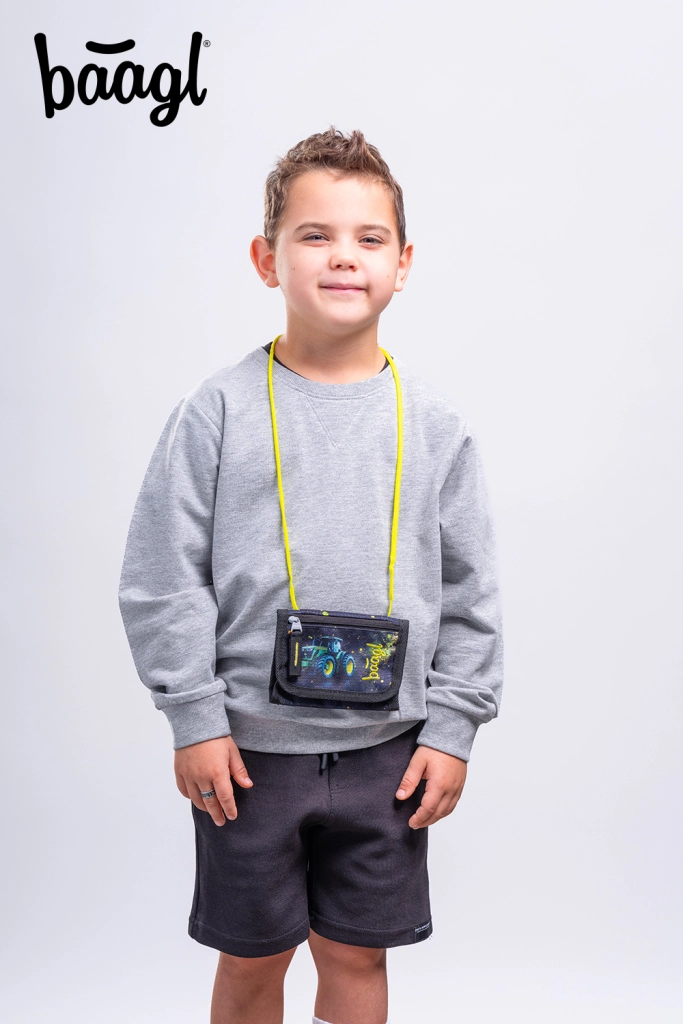 Zoek je een lichte en veilige portemonnee voor kinderen? Deze BAAGL nekportemonnee met tractormotief houdt alles wat belangrijk is altijd bij de hand – van kleingeld en een lunchchip tot het sleuteltje van het kluisje. Dankzij de verstelbare band met veiligheidsclip past hij comfortabel en laat hij los wanneer hij ergens achter blijft haken.