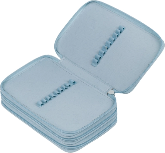 De doordachte interne indeling met flexibele elastieken houdt zowel dunne als dikke schrijfwaren veilig op hun plek – van potloden en stiften tot pennen, linialen en kleine hulpmiddelen. De verstevigde rug vergemakkelijkt het sluiten, de rondomlopende rits zorgt voor veilige opberging van de inhoud en afgeronde hoeken beschermen zowel de etui als de inhoud.