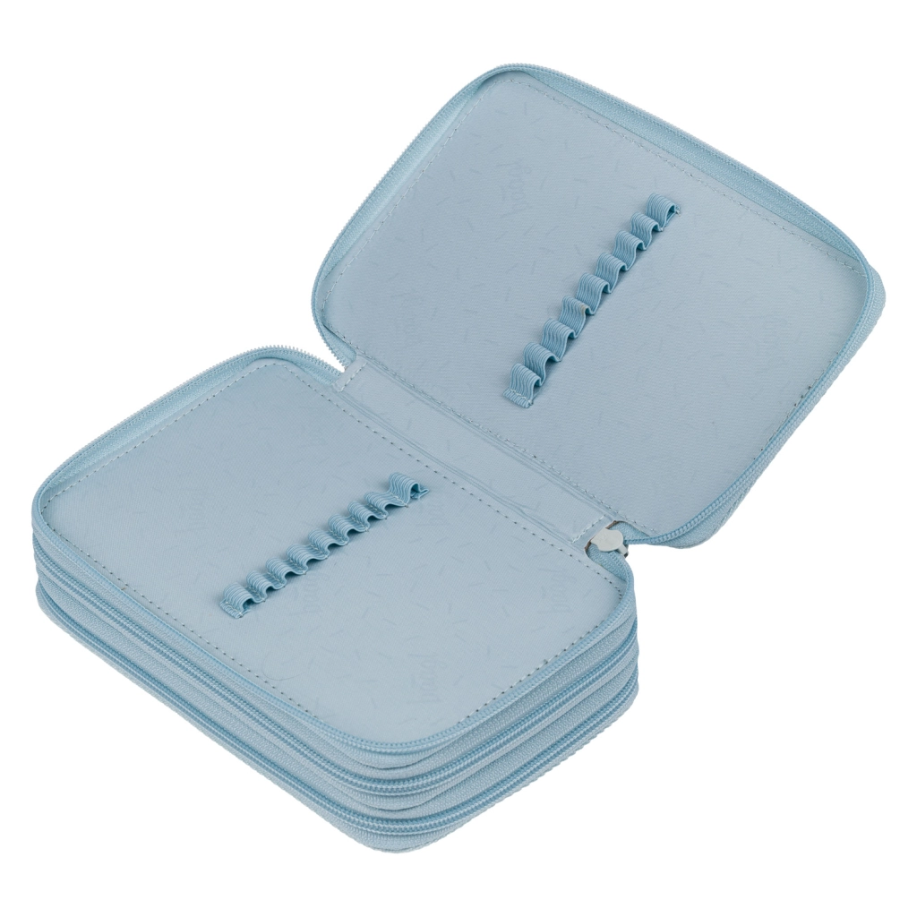 Meerdere compartimenten met elastische lussen en vakken houden kleurpotloden, stiften en accessoires perfect geordend en snel toegankelijk.
