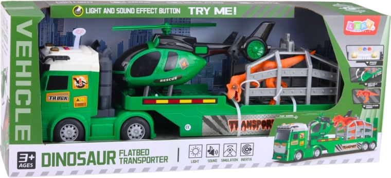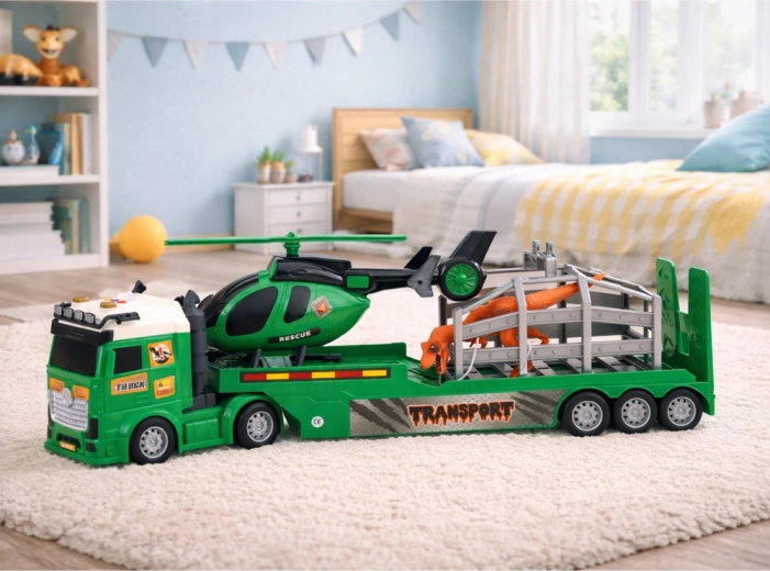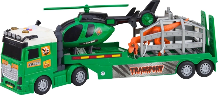 - Transportset voor kinderen met truck, helikopter en dinosauruskooi