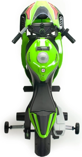 Officiële KAWASAKI-licentie met racekappen, windscherm en remdetails voor een uiterst natuurgetrouwe look die jonge rijders enthousiast maakt.